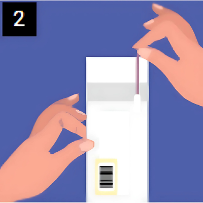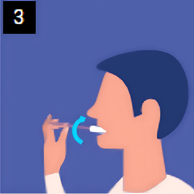Inserire il tampone in bocca e strofinare con forza all’interno di entrambe le guance per almeno 10 secondi per guancia.